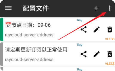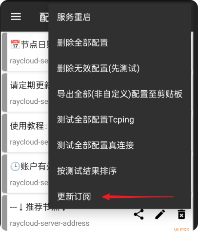 2.点击客户端主界面左上角三个点→更新订阅